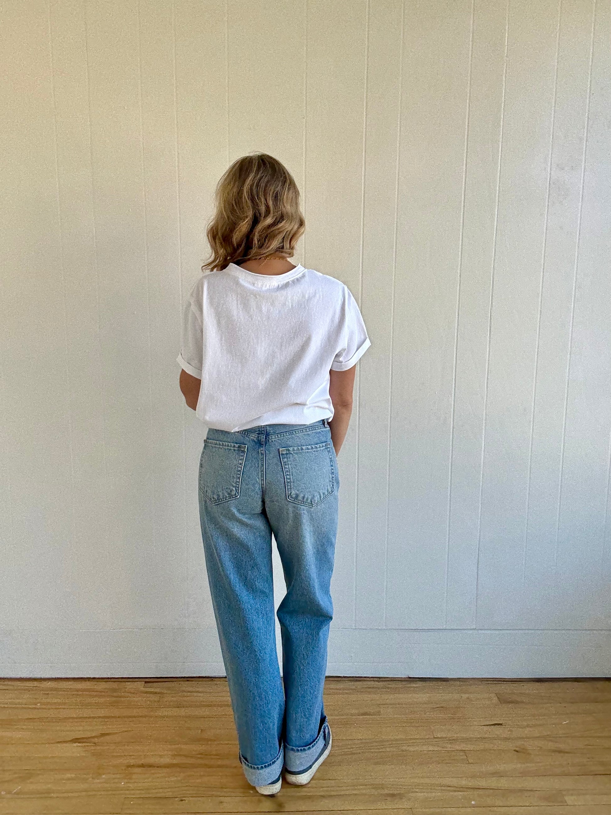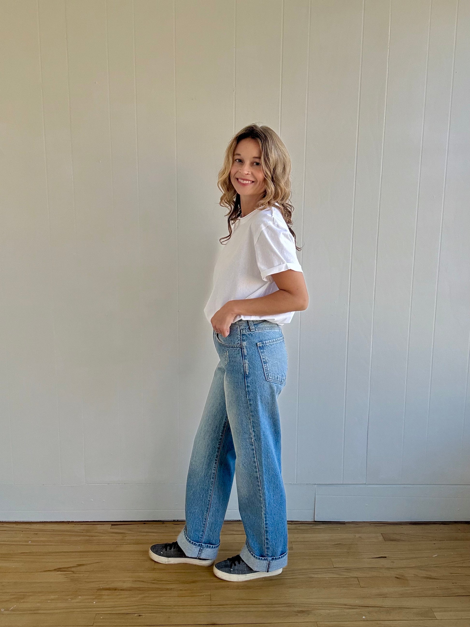 The Bree Relaxed Straight jeans offer a mid rise fit in a medium wash. With a relaxed straight cut, these jeans provide both comfort and style for everyday.