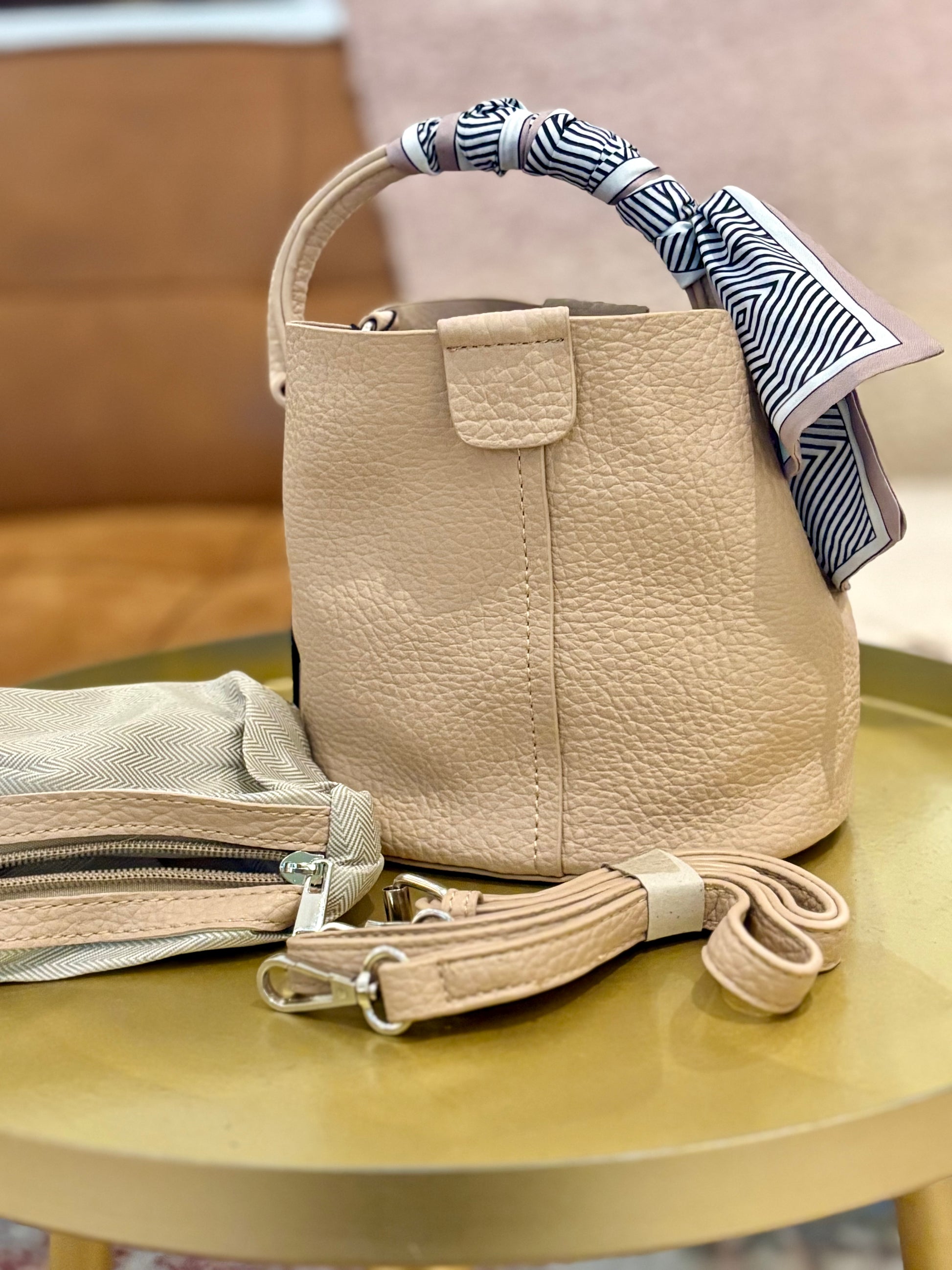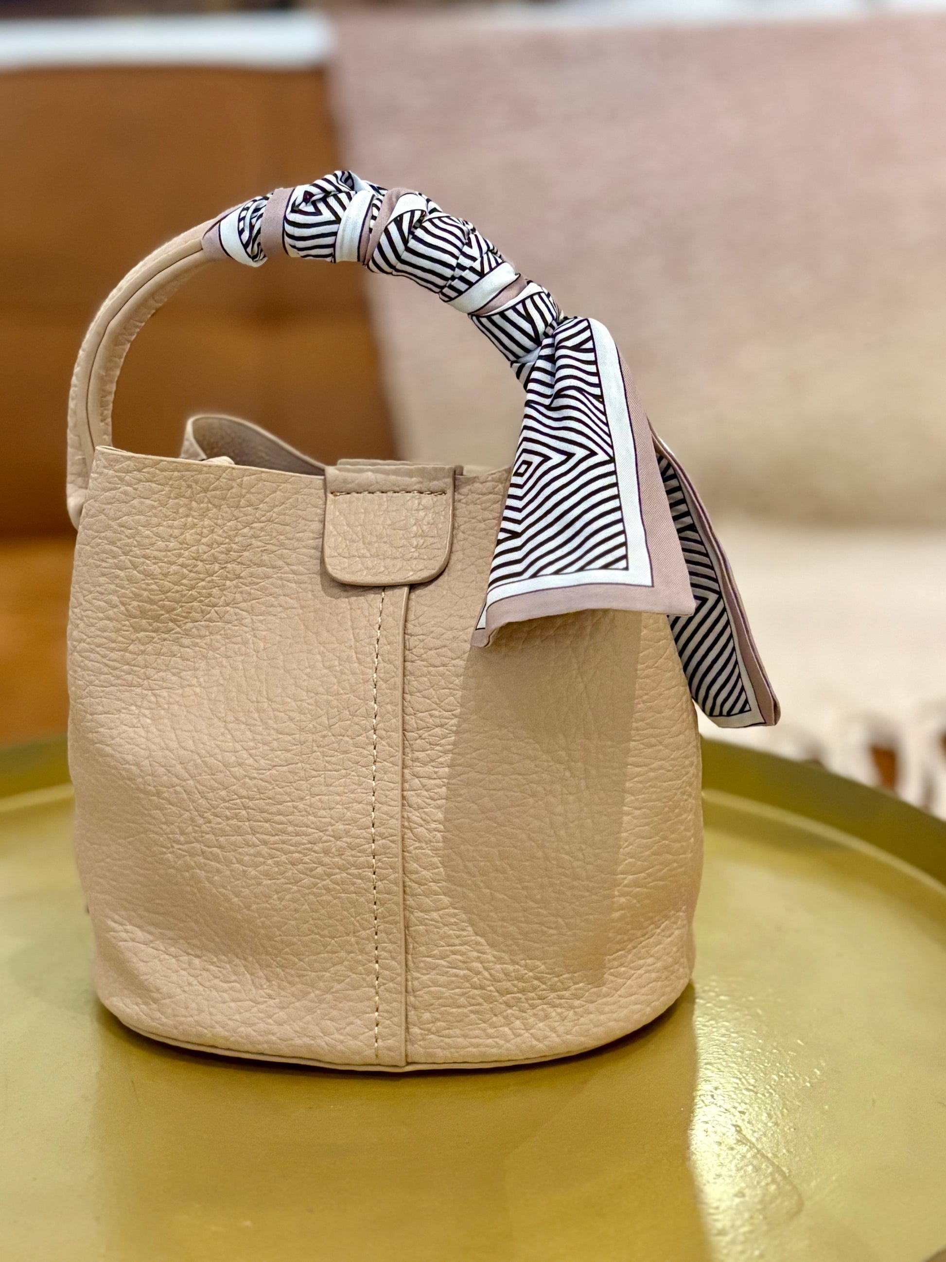 Discover your new go-to accessory before you leave the house! Introducing the Blair Bucket Bag. Crafted with durable polyurethane material, this adorable and functional bag features an additional strap for crossbody wear. Every bag has a unique scarf attached to the handle that adds a nice touch. Perfect for every day wear while still elevating your look.