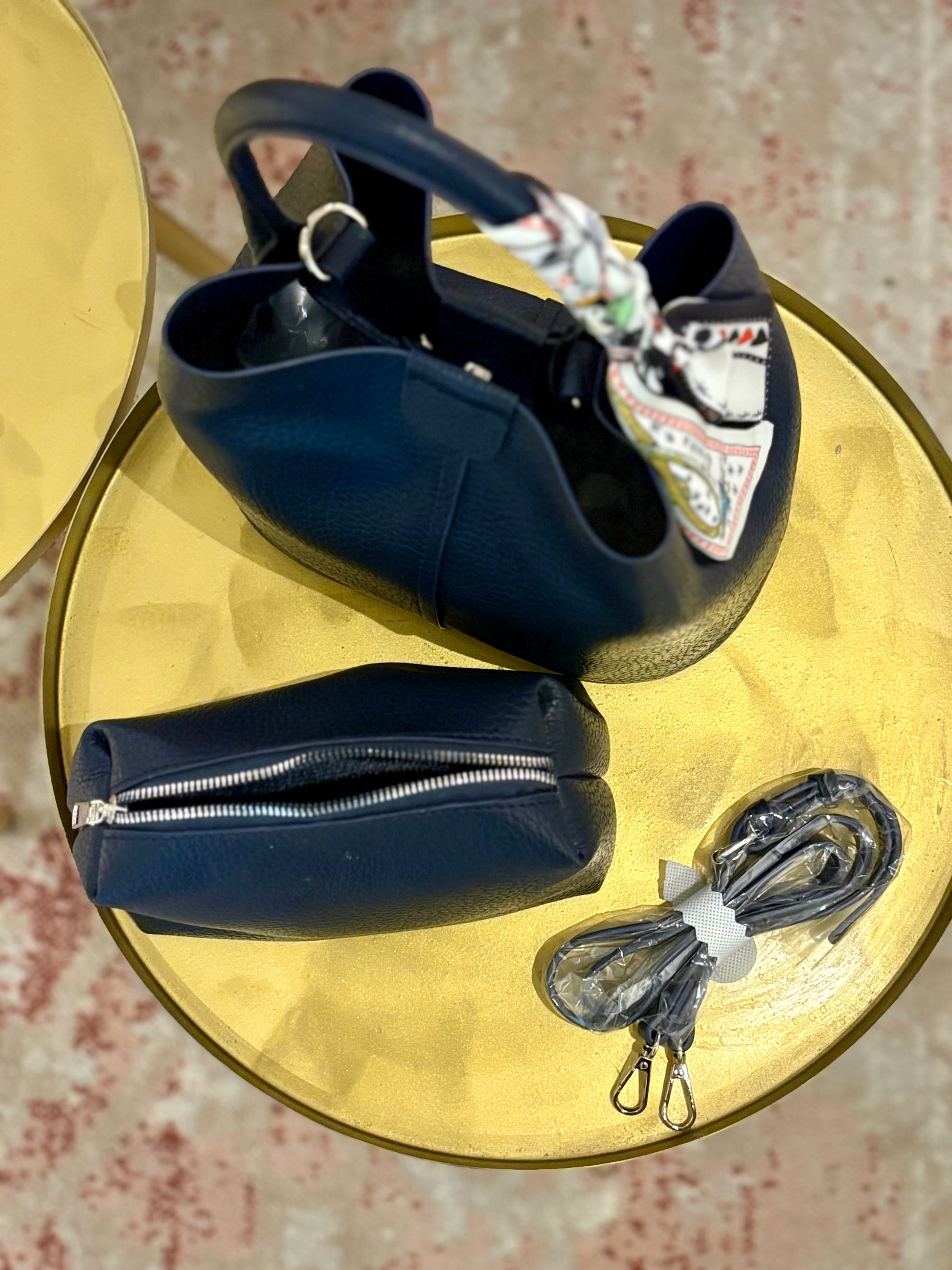Discover your new go-to accessory before you leave the house! Introducing the Blair Purse, a larger version of our Blair Bucket Bag. Crafted with a durable polyurethane material, this adorable and functional bag features an additional strap for crossbody wear. Every bag has a unique scarf attached to the handle that adds a nice touch. Perfect for every day wear while still elevating your look.