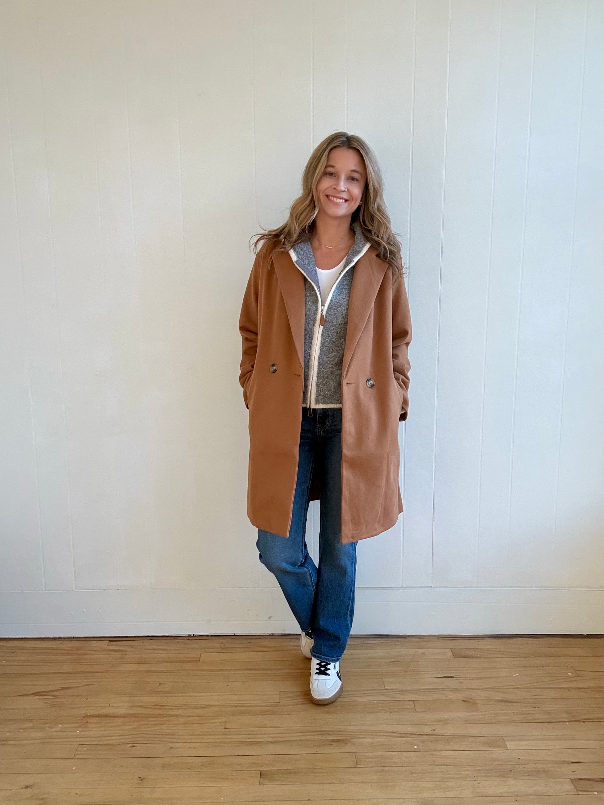 Featuring a classic notched lapel and a relaxed silhouette, this coat blends sophistication and practicality for a perfect, easy-to-layer piece.