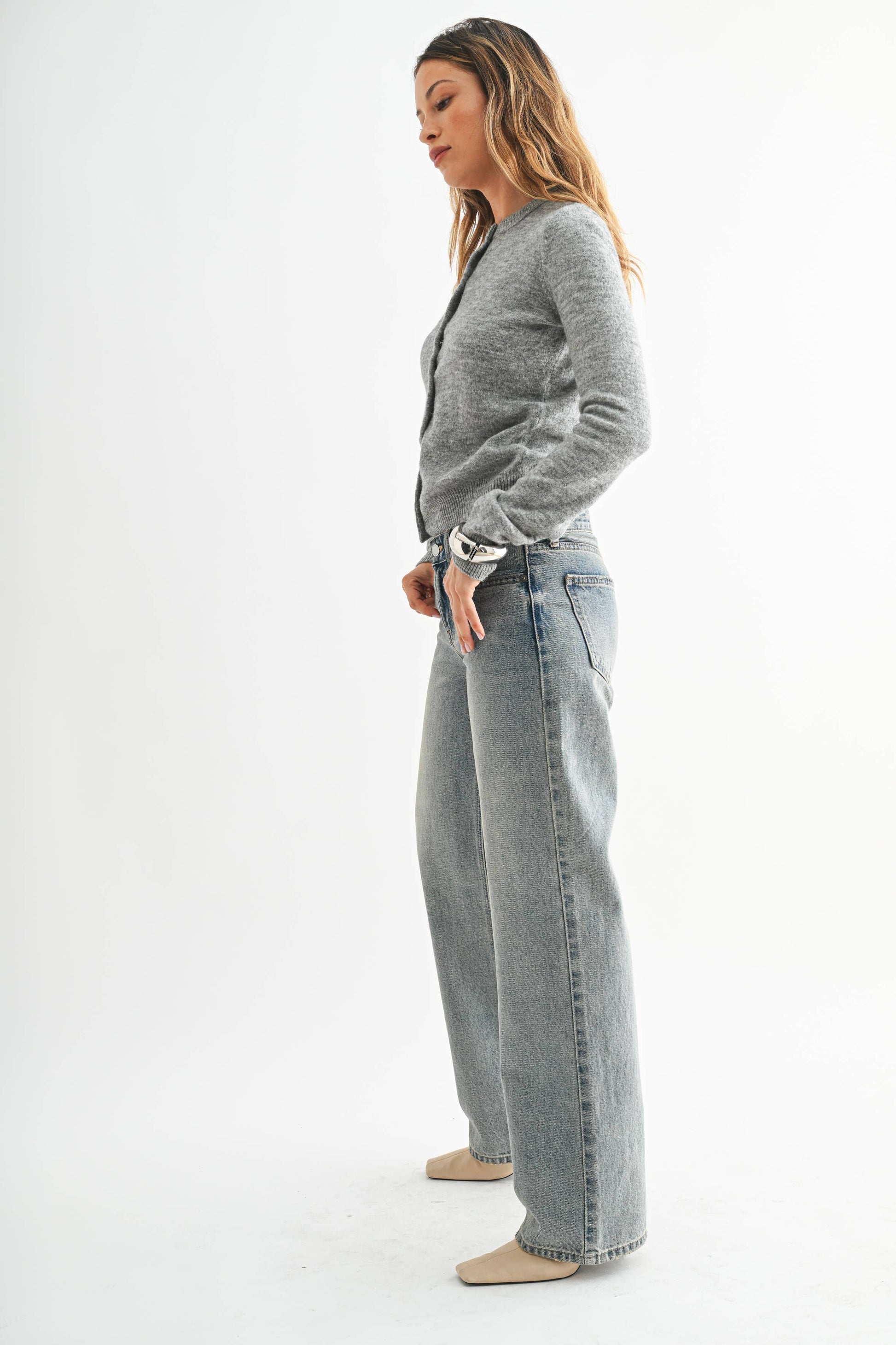 The Tint Relaxed Straight Leg jeans feature a 9" rise, 32" inseam, and 9.5" opening in Vintage Light Denim for a classic mid-rise and relaxed fit.