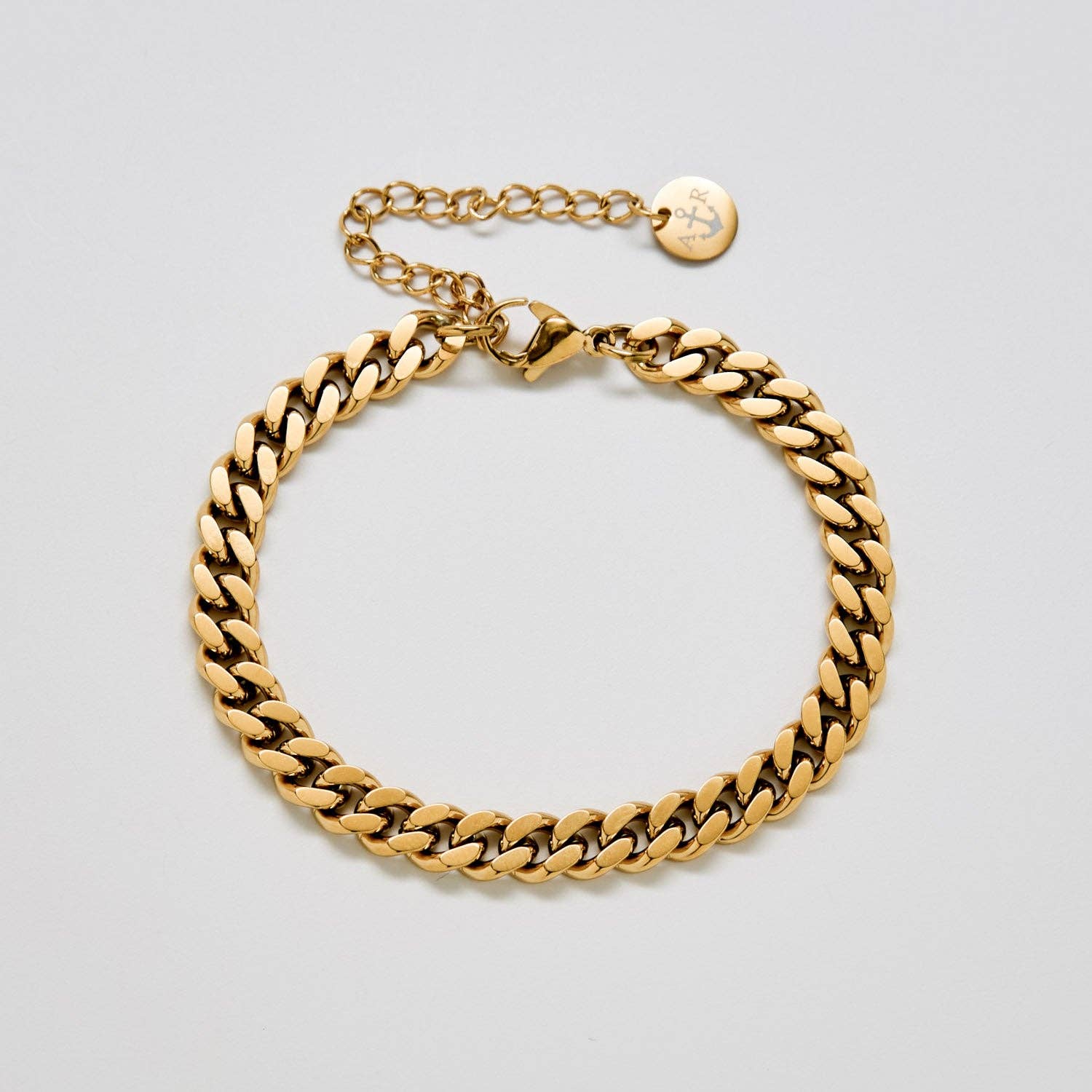 Add some boldness to your wrist with Admiral Row's Gold Curb Chain Bracelet. The thick rope chain's unique design adds a personality to any outfit, while the high-quality gold material ensures durability and long-lasting shine. This bracelet is a must-have addition to your jewelry collection, perfect for everyday wear or special occasions.