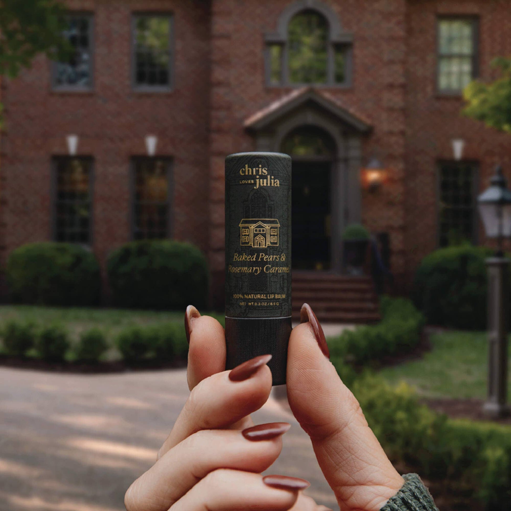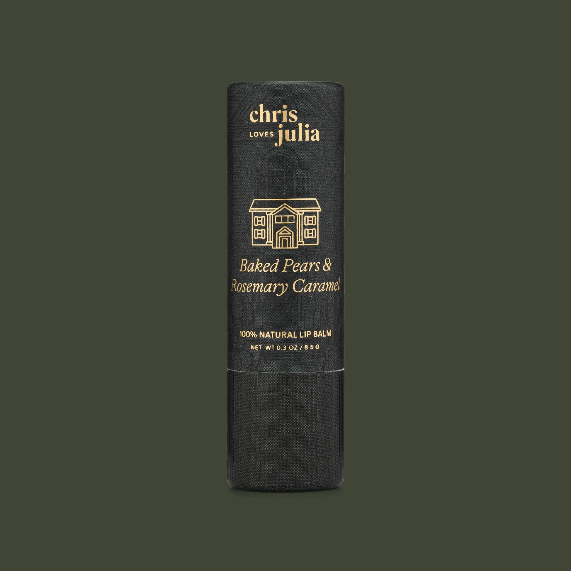 Fall in love with our limited edition Chris Loves Julia Lip Balms inspired by their past homes. Baked Pears & Rosemary Caramel: Earthy rosemary complements caramelized pear, producing a rich, inviting scent with herbal depth and warmth. Our natural lip balm formula is as smooth as can be. Each cardboard tube is filled from the bottom to the top with lip hydrating goodness. Once you’re done, make sure to recycle; our ingredients come straight from Mother Earth, and we like to give right back! Poppy & Pout has been making all-natural lip care products by hand in Idaho since 2014. All of our products are made from 100% natural ingredients. We believe simple ingredients are all you need for perfectly hydrated lips. 100% NATURAL INGREDIENTS Cocos Nucifera (Coconut) Oil, Cera Alba (Beeswax), Helianthus Annuus (Sunflower) Oil, Mentha Piperita Oil, Natural Flavor Oil 100% Natural | Cruelty-Free (Leaping Bunny Certified)