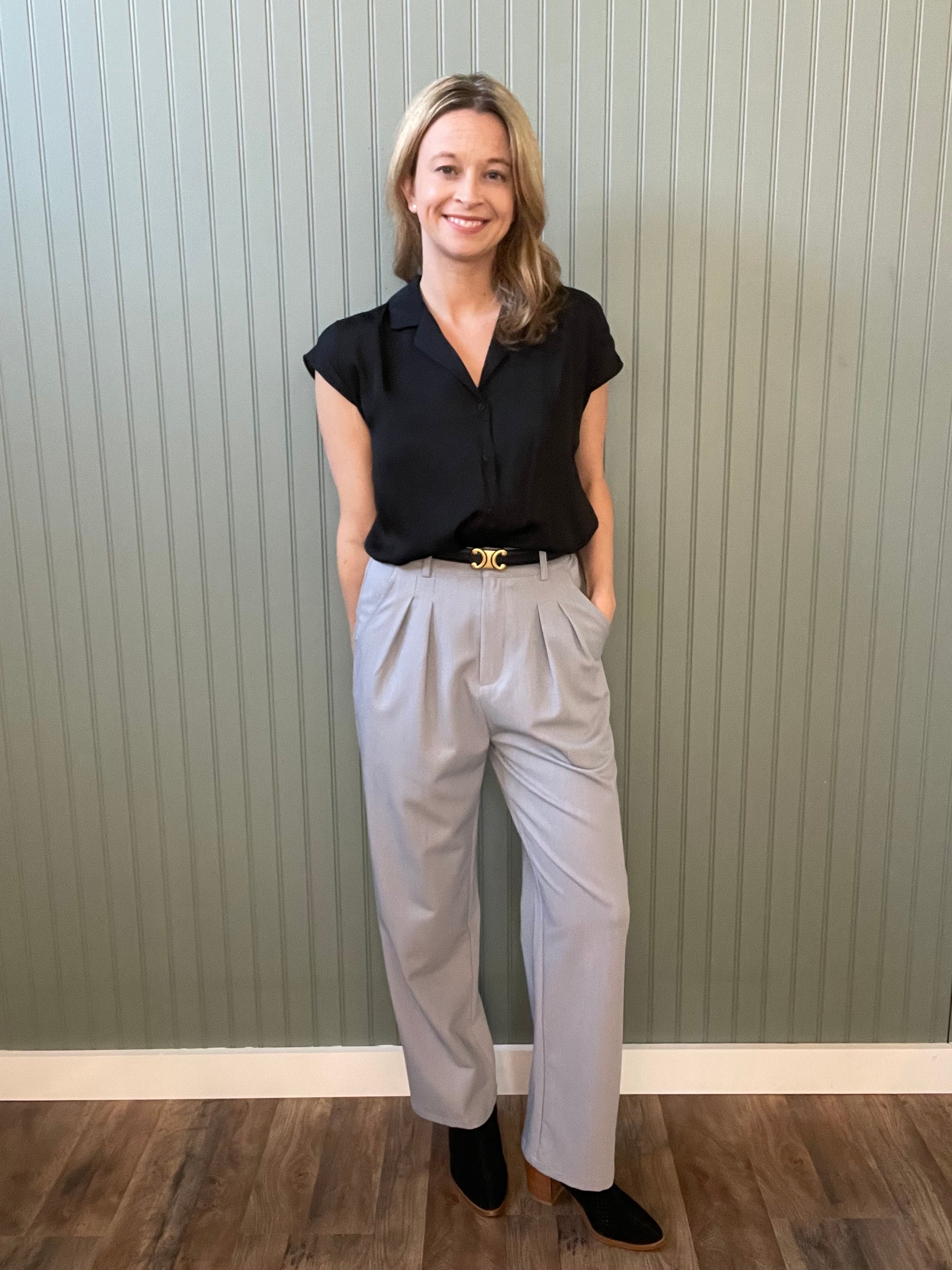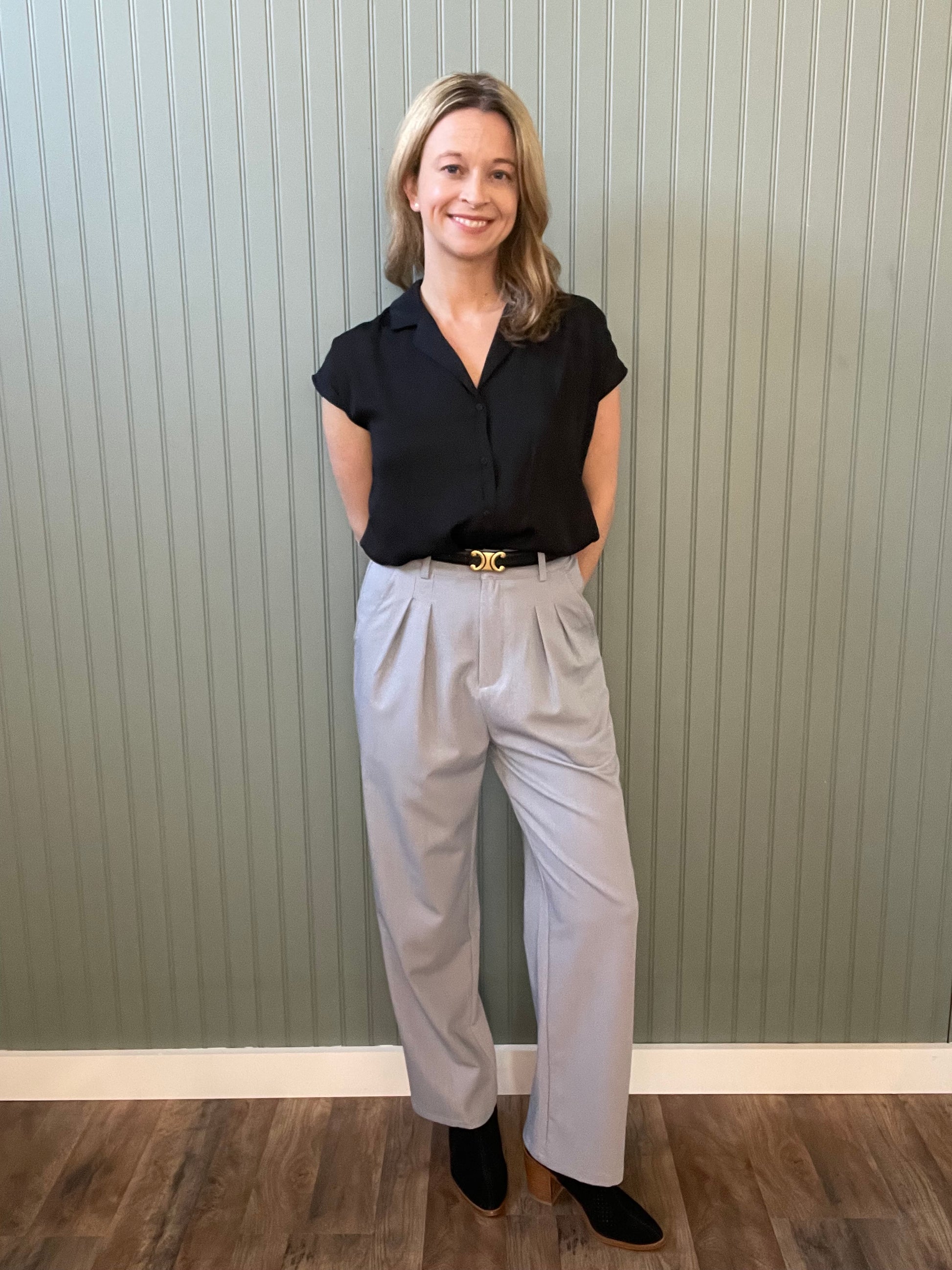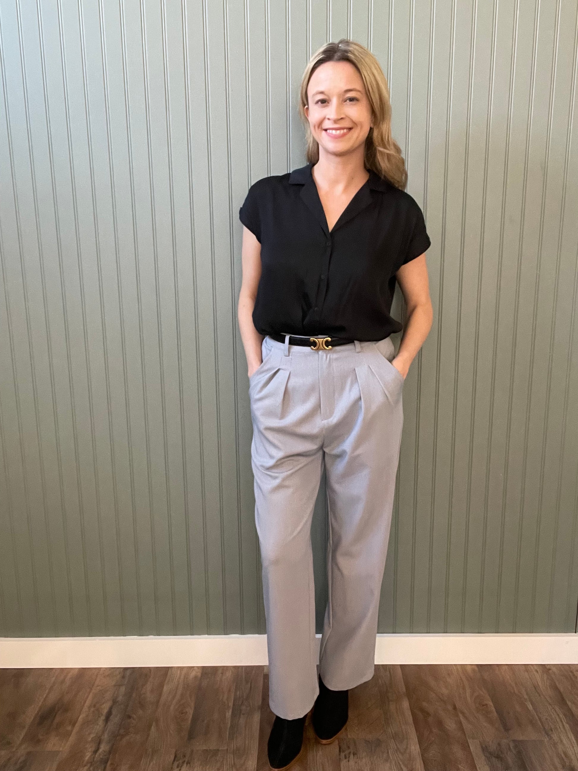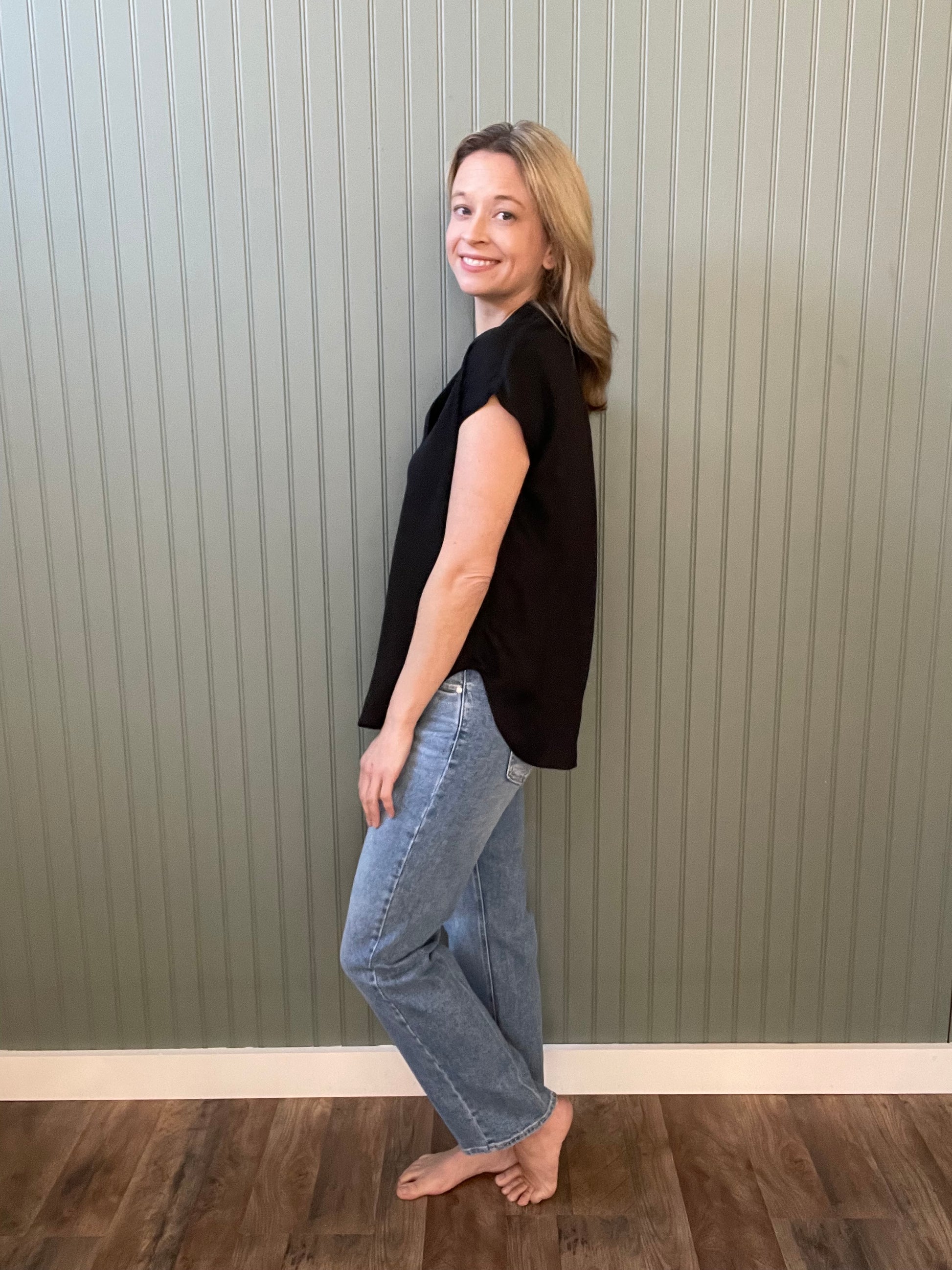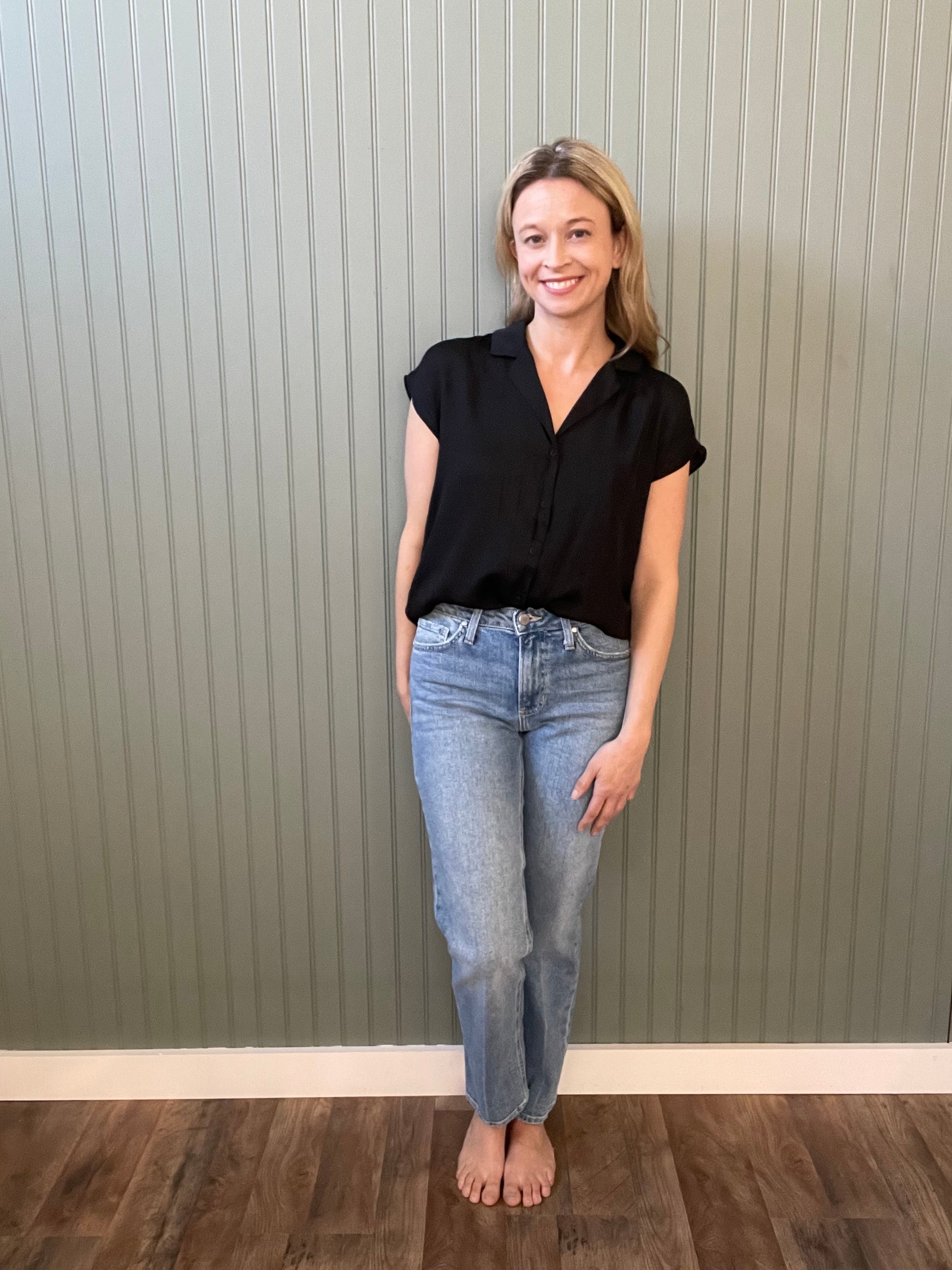 This Jovie Cap Sleeve blouse features a button down design and stylish cap sleeves, making it the perfect combination.