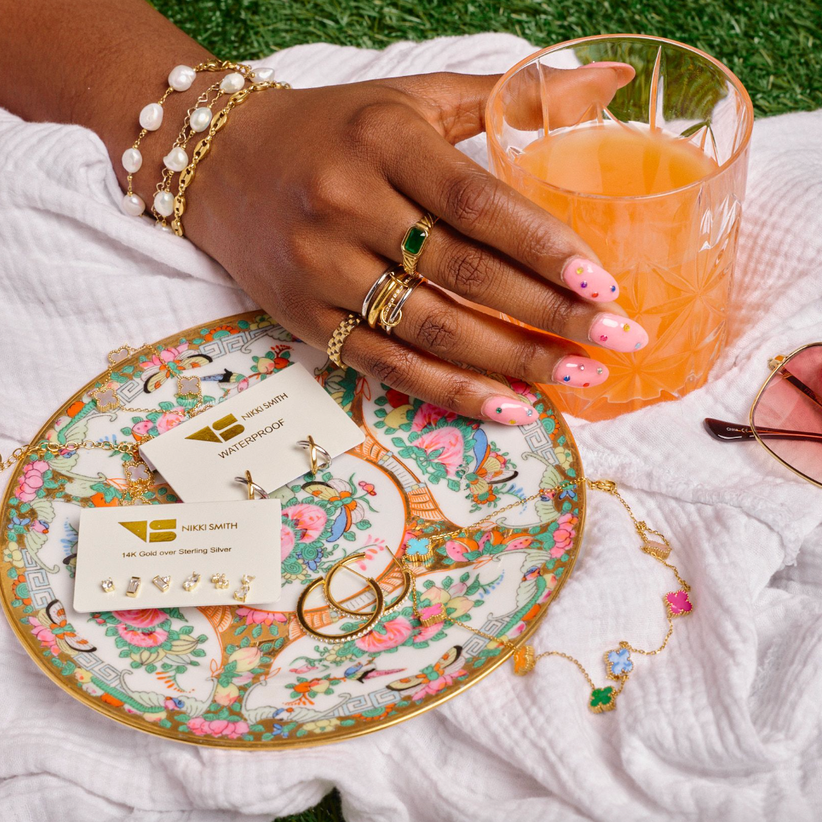 The Olivia Mixed Metal Stacked Ring Set features a combination of waterproof stainless steel and 14k gold materials, making it durable and stylish. With sparkling cubic zirconia gems, this set adds a touch of elegance to any outfit. Perfect for those who want a timeless and versatile accessory.