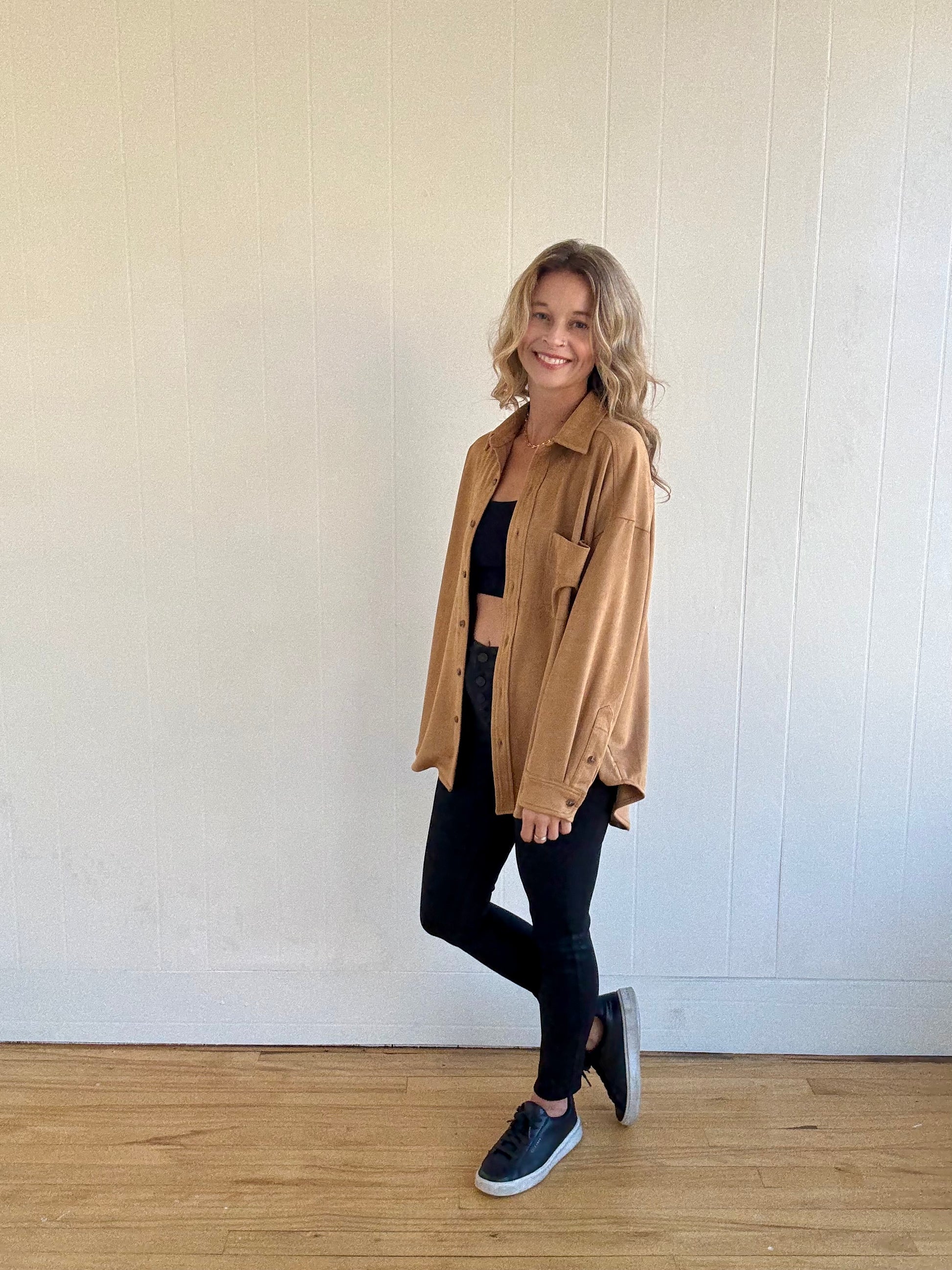 This Sloan button up top in a warm ginger color features a classic button-up design. Soft and luxurious to the touch, it adds a bit of comfortable sophistication to any outfit.