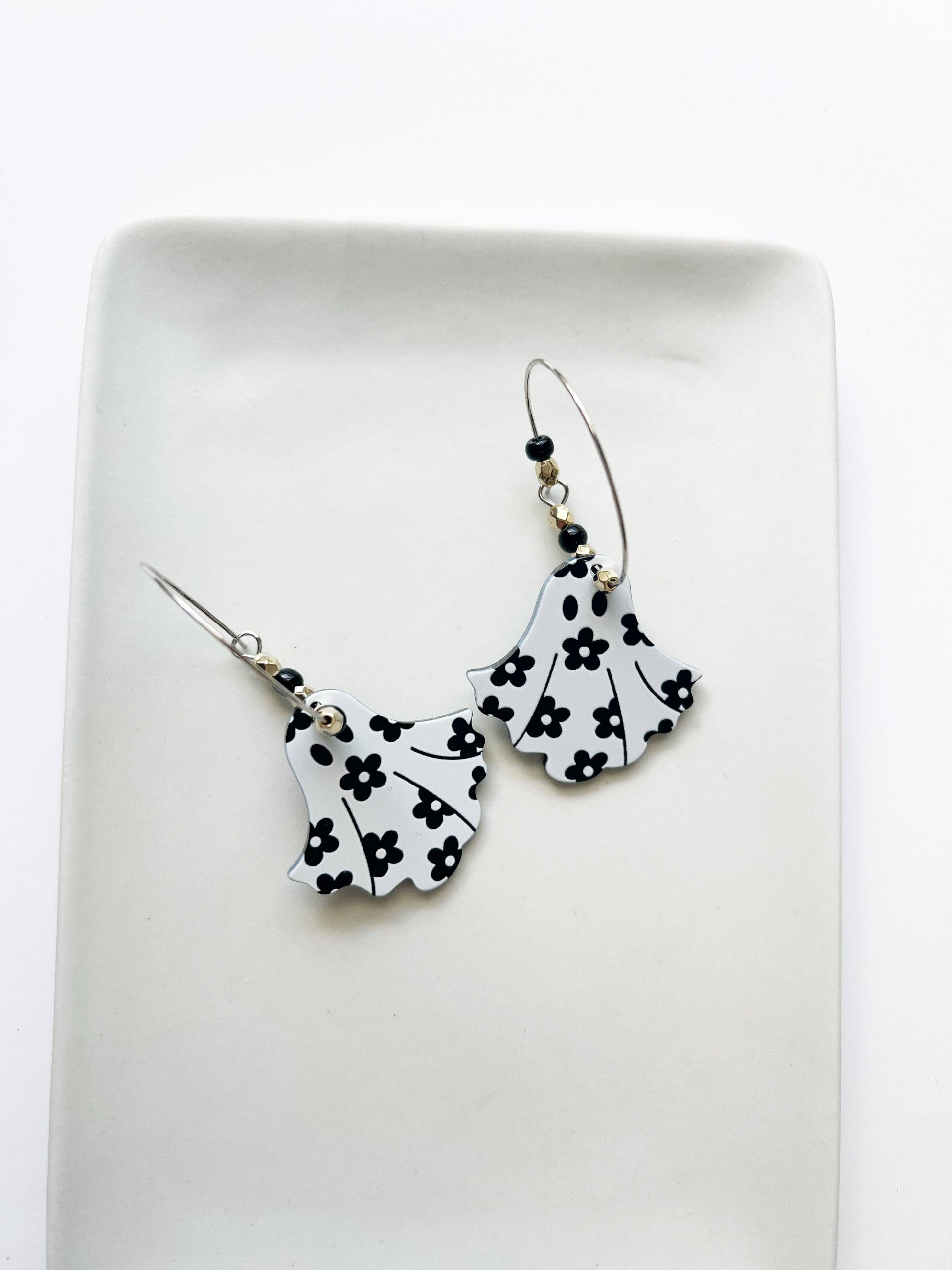 Introducing The Spooky Daisy Ghost Hoop Earrings - the perfect accessory for Halloween! These minimalistic earrings feature a spooky ghost design with red and white accents, adding a touch of scary to any fall or autumn outfit. Embrace the holiday spirit with these stylish and versatile earrings.